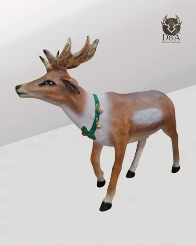 Dieses realistische XXL-Rentier wurde mit den besten derzeit erhältlichen Materialien in einem Qualitätsharz nach den Standards der Automobilindustrie für hohe Beständigkeit gegen Frost, Regen und Sonne entworfen.